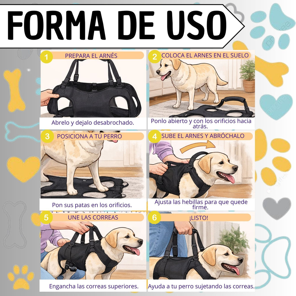 Este arnés cuenta con un sistema de velcro que facilita su colocación y ajuste, brindando comodidad tanto al dueño como al animal. Aunque no incluye correa ni gancho para correa, su diseño permite un manejo sencillo y efectivo, ideal para ayudar a perros con movilidad reducida o en proceso de recuperación.