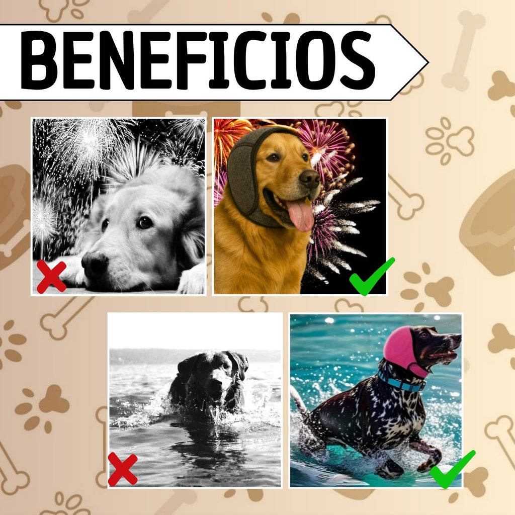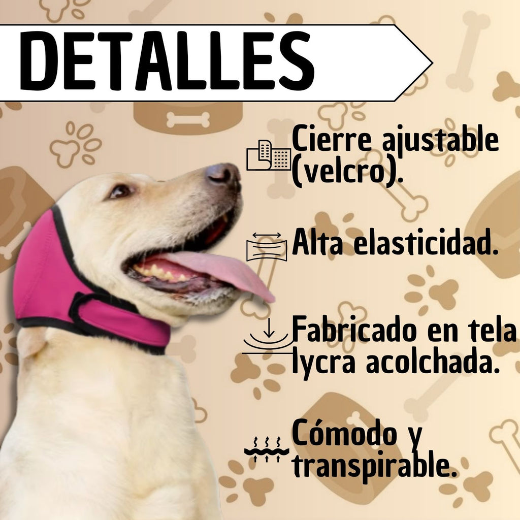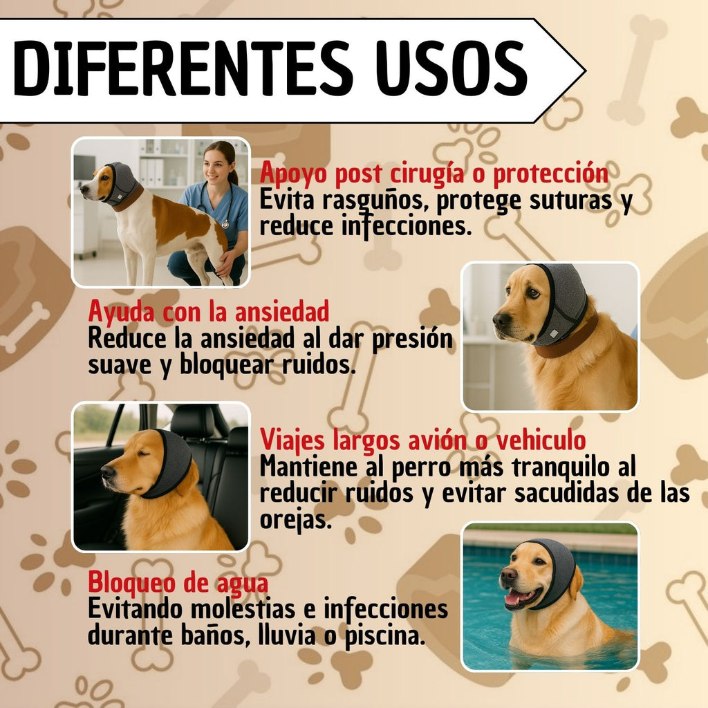 Es un protector de orejas para perros, diseñado para cubrir y proteger las orejas de la mascota contra ruidos fuertes, viento, frío, humedad y movimientos excesivos. También ayuda a mantener las orejas en su lugar durante procesos de recuperación, baños, secado o tratamientos veterinarios, brindando comodidad y seguridad.